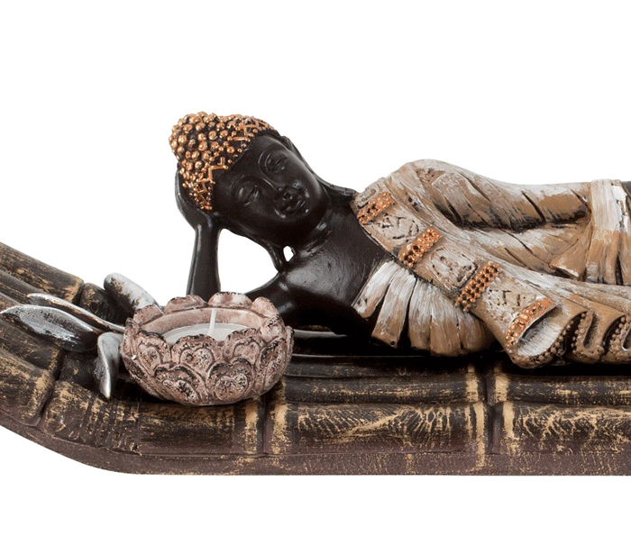 Ko prižgete svečko, se svetloba nežno preliva preko kipa Bude, kar ustvari prav posebno atmosfero, ki pomirja um in navdihuje k meditaciji, sprostitvi ter notranjemu ravnovesju. Kipec Buda simbolizira modrost, mir in duhovno prebujenje – zato je odlična izbira za vsak dom, kjer želite dodati pridih harmonije.