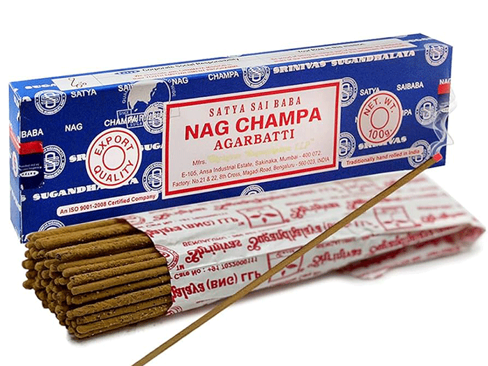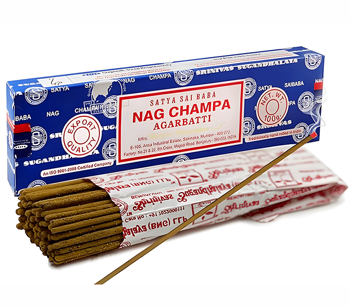 Gre za tradicionalno modro različico dišeče palčke indijskega duhovnega učitelja Satye Sai Baba. Originalne dišeče palčke Nag Champa Satya Sai Baba so prva skrivnostna receptura družine Setty, ustanoviteljice podjetja Shrinivas Sugandhalaya. Vonj je prestal preizkušnje časa, kot najbolj oboževan vonj flore po vsem svetu. Vonj je močan in harmoničen, daje navdih za sprostitev in odstiranje skrivnosti meglenega jutra. Dišeča zmes smol, gum, začimb, cvetlic in olj, ki ohranjajo čudovito aromo še dolgo po uporabi. Modre Sai Baba Nag Champa dišeče palčke se uvrščajo med visoko kvalitetne in hkrati med najbolj priljubljene dišeče palčke širom po svetu.