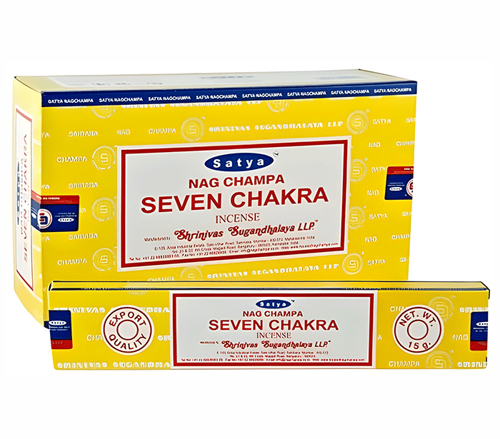 Satya Seven Chakra - Satya sedem čaker dišeče palčke so priljubljene zaradi svojih edinstvenih vonjev in energijskega delovanja. Vsaka palčka je zasnovana tako, da dviguje energijo, čisti prostor in ustvarja prijetno vzdušje. Ročno izdelane dišeče palčke so iz naravnih sestavin, kot so zelišča, cvetovi, smole in eterična olja, kar omogoča njihovo uporabo pri meditaciji, sproščanju, jogi in čiščenju prostorov.