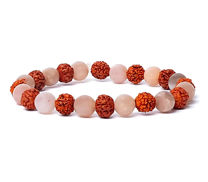 Kristalna energijska zapestnica iz mareličnega mesečevega kamna in semen rudraksha je močan duhovni nakit, ki združuje energijo dveh edinstvenih naravnih elementov.