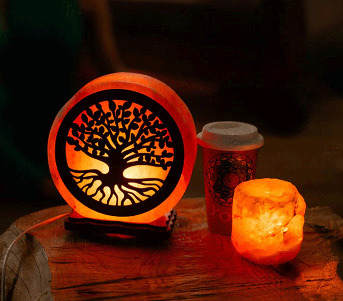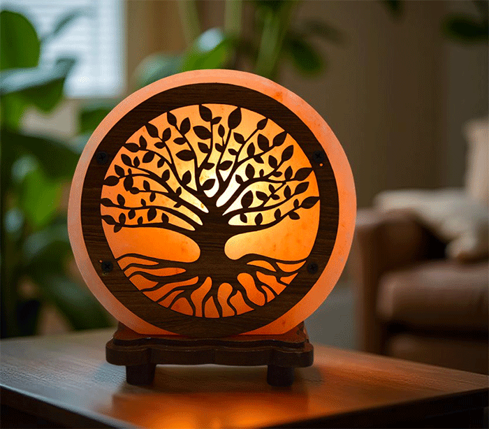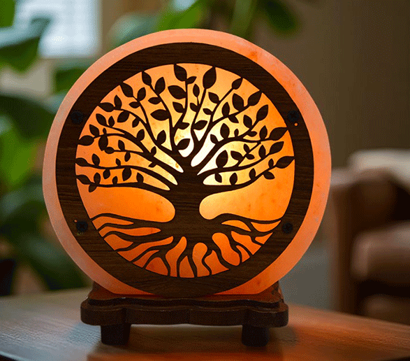 Himalajska solna lučka s simbolom drevesa življenja – ravnovesje narave v vašem domu