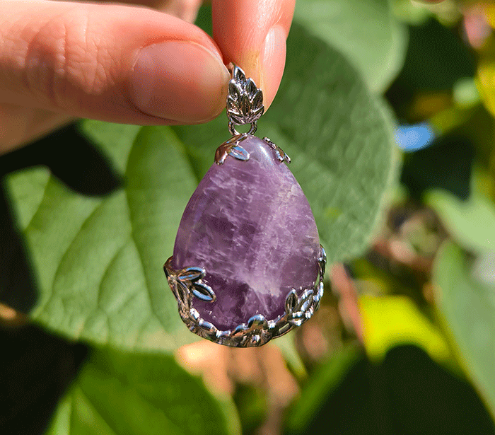 Ametist je pogosto uporabljen kot zaščitni talisman, saj odbija negativno energijo in ščiti pred vplivi okolice. Pomaga ustvariti zaščitno energijsko polje okoli nosilca, kar prinaša občutek varnosti in notranje moči.