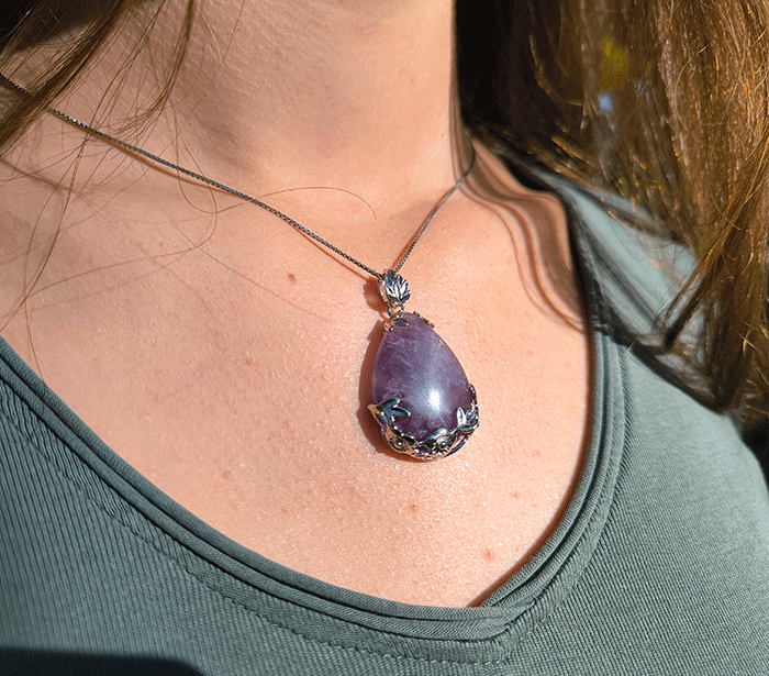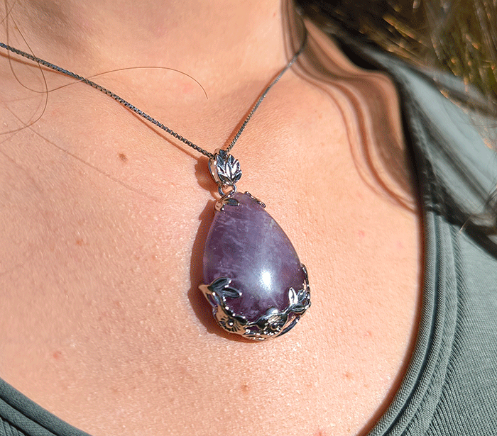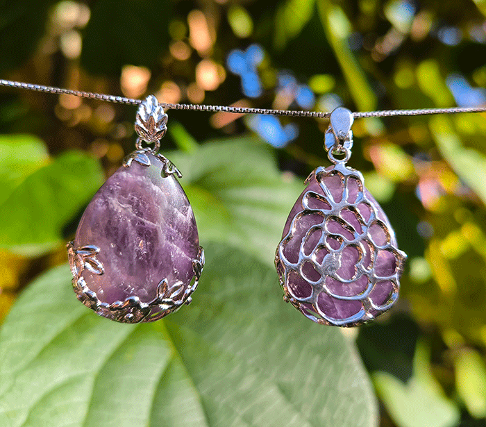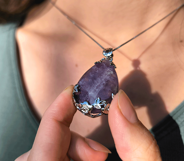Obesek Ametist v obliki kapljice je klasično lep in primeren za vsakodnevno nošenje ali posebne priložnosti. Njegova prefinjena oblika kapljice in čista vijolična barva ametista mu dajejo eleganten videz, zaradi česar je izjemen kos nakita, ki hkrati dopolnjuje videz in prispeva k dobremu počutju.