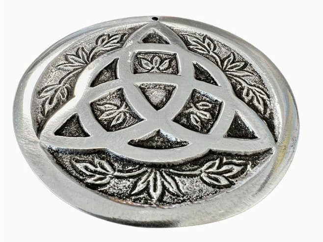 Okrogli kovinski podstavek za dišeče palčke Keltski vozel je eleganten in praktičen dodatek za uporabo dišečih palčk. Izdelan je iz kakovostne kovine, ki zagotavlja stabilnost in dolgo življenjsko dobo. Njegova okrogla oblika omogoča varno držanje palčk med gorenjem, hkrati pa preprečuje širjenje pepela izven podstavka, kar ohranja vaš prostor čist.