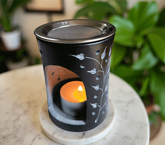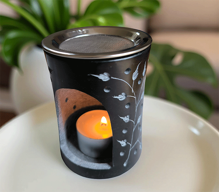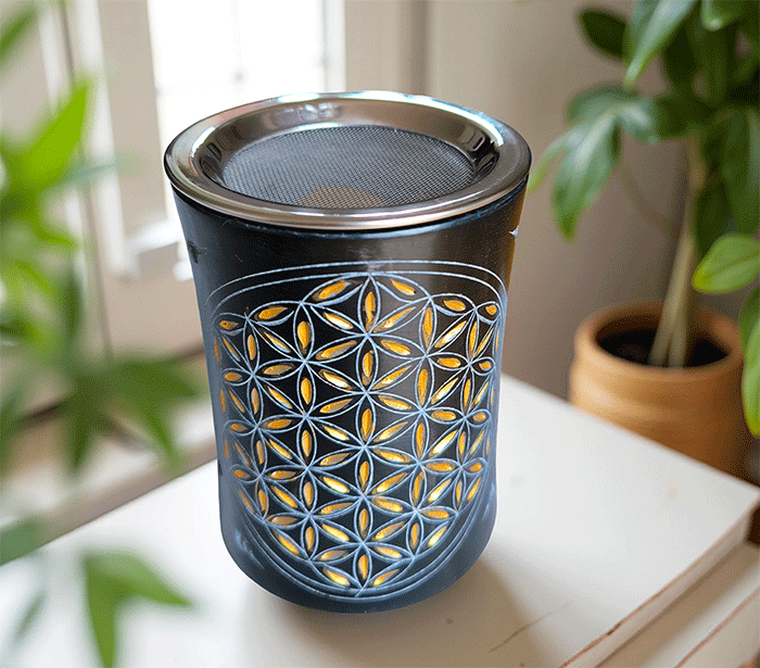 Na mrežico položite kadilo, zelišča ali smolo, pod njo prižgite čajno svečko. Uporablja se lahko tudi kot klasična posoda za kadilo ali dekorativen svečnik. Vedno uporabljajte na ognjevarni podlagi in ne puščajte brez nadzora.