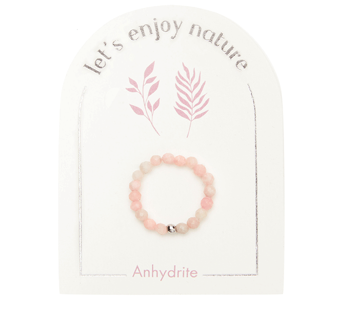 Prstan iz kristala Anhidrita je čudovit energijski nakit, ki združuje naravno lepoto kristalov, nežno energijo in sodoben dizajn. Izdelan je iz skrbno izbranih poldragih kamnov, nanizanih na elastično nit, kar omogoča udobno nošenje in prilagajanje prstu. Prstan je primeren tako za vsakdan kot tudi za posebne priložnosti.