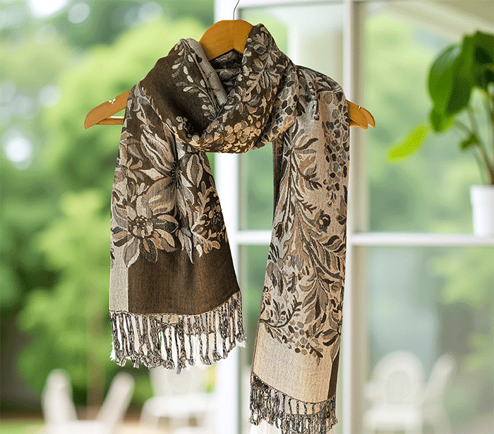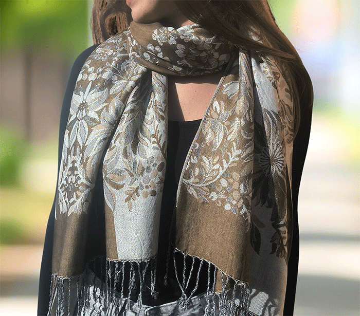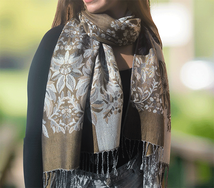 Šal Celebrate rjav nežno svetlikajoč - pašmina