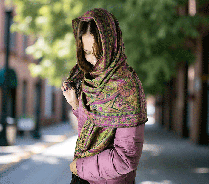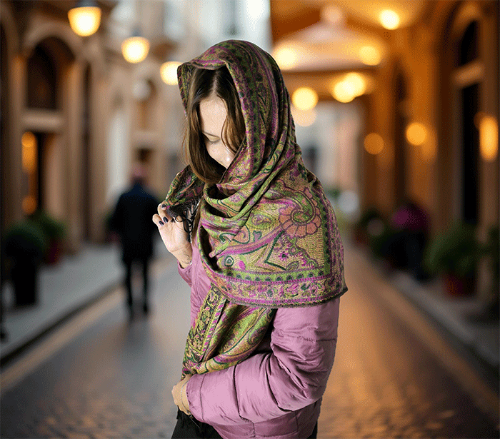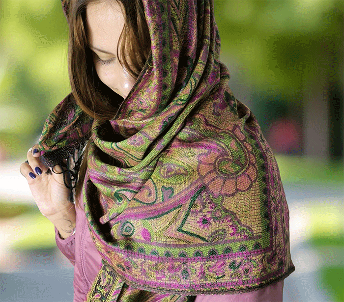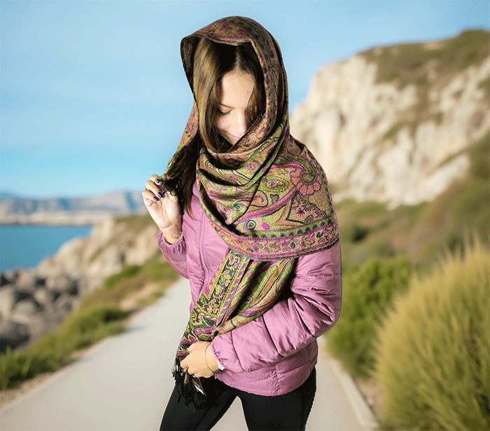 Šal je topel, mehek in prijeten na otip, zaradi naravnih materialov pa je primeren tudi za občutljive osebe, saj ne draži kože. Je vsestransko uporaben – primeren za vse priložnosti in letne čase, hkrati pa v modno kombinacijo vnaša pozitivno energijo in eleganco. Nositi ga je prijetno, saj zagotavlja udobje in slog v vsakem trenutku.