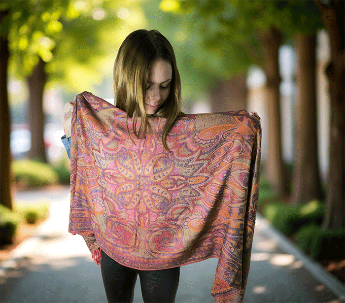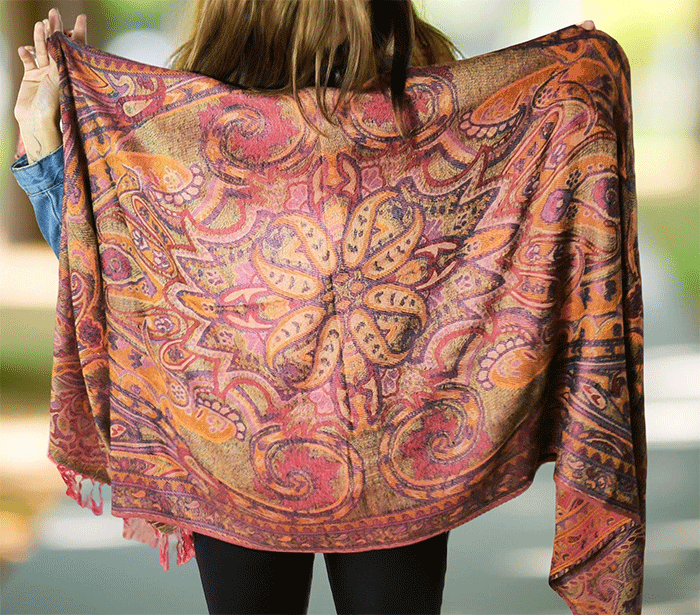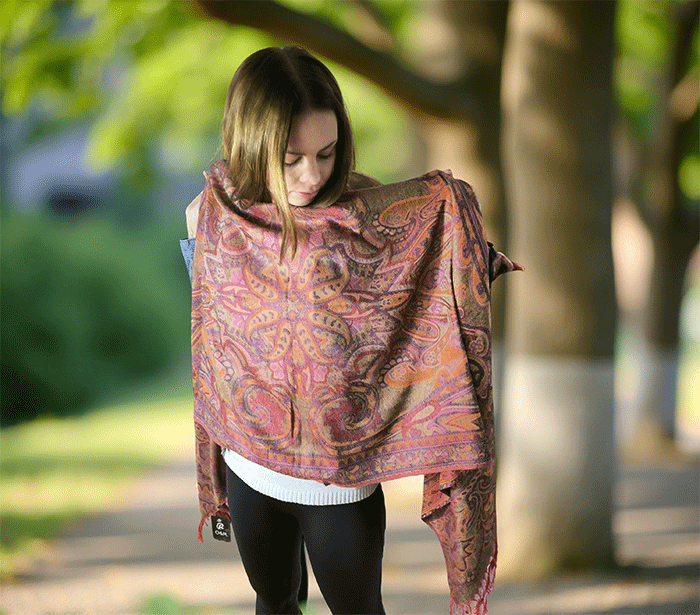 Šal Crazy v stilu pašmine je izdelan iz naravnih materialov, kar zagotavlja mehkobo, toplino in prijetno nošenje, tudi za ljudi z občutljivo kožo. Je izjemno udoben in lahek, ter odličen za vse letne čase in priložnosti – od vsakodnevnega nošenja do elegantnih večernih izhodov.