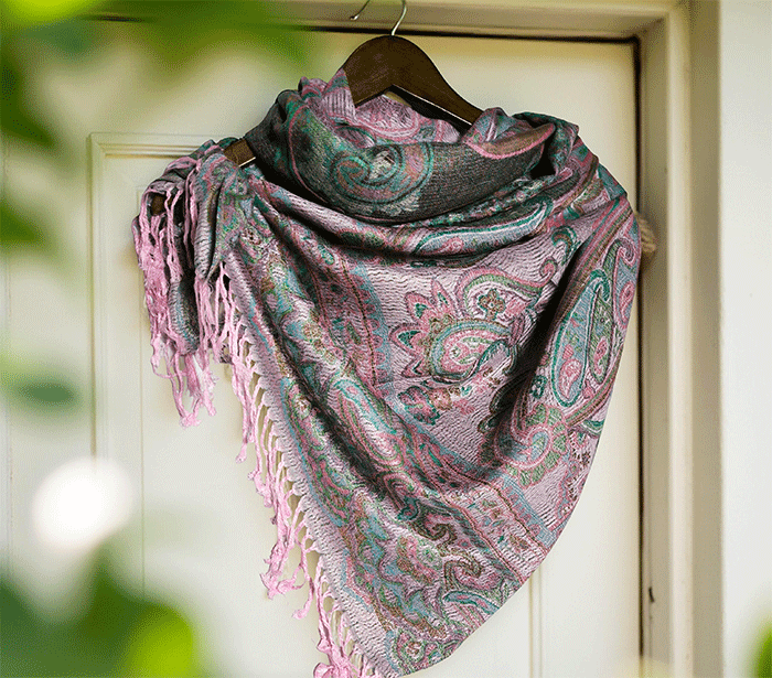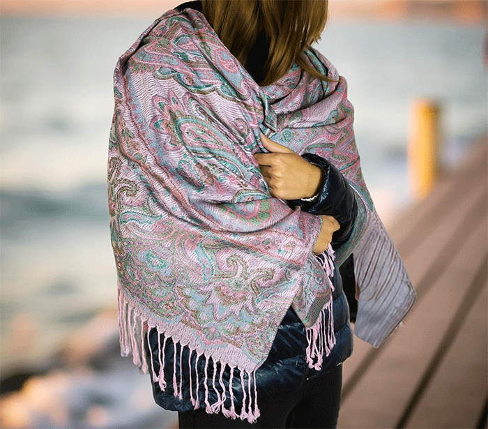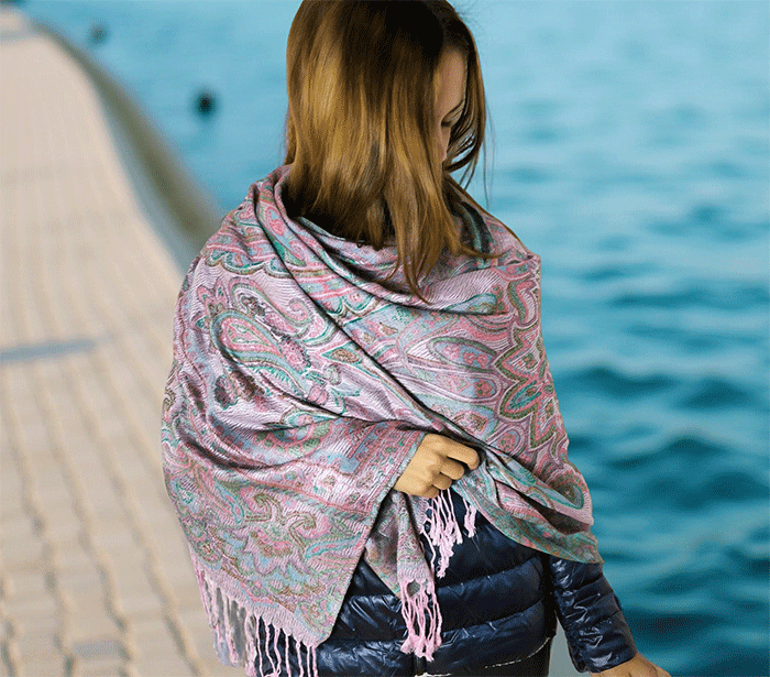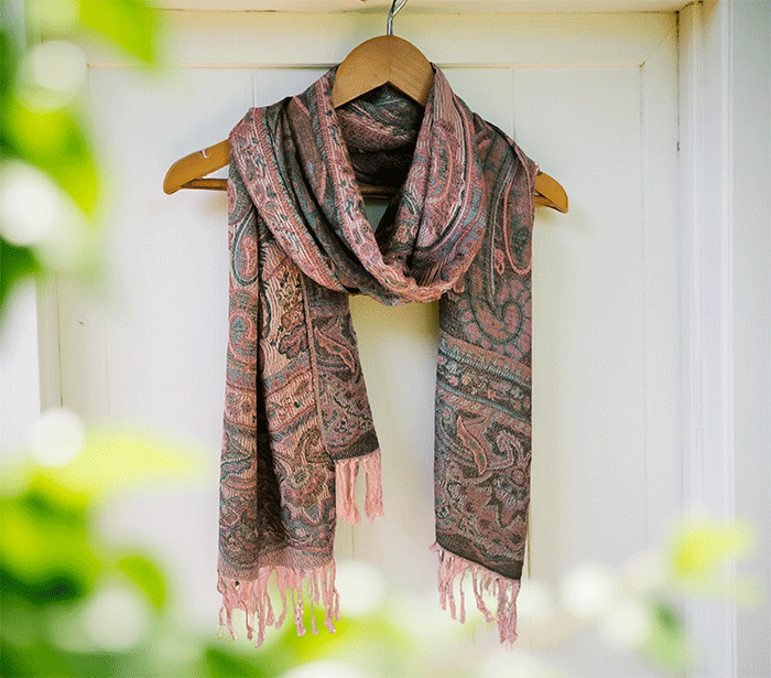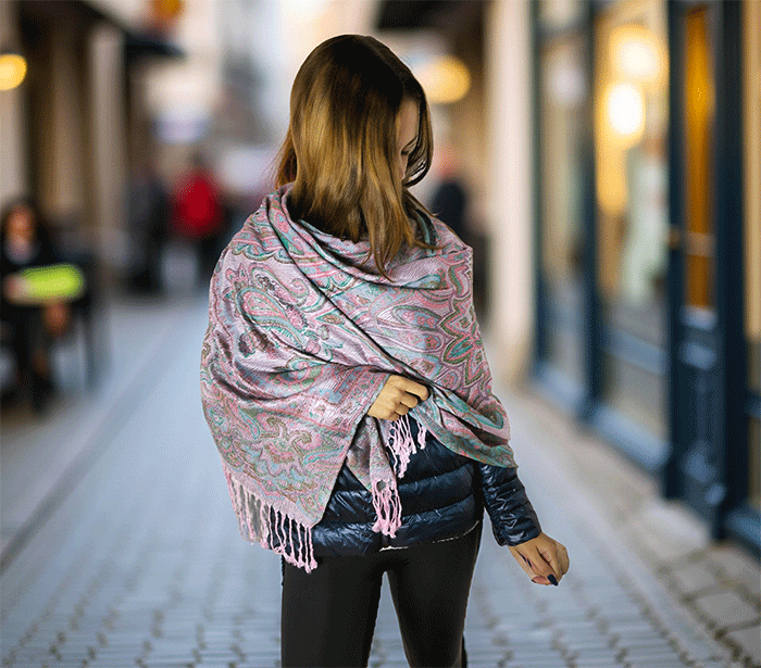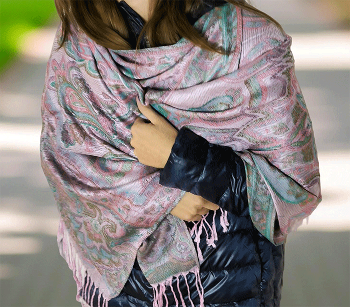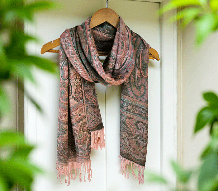 Šal Crazy v stilu pašmine iz naravnih materialov v roza odtenkih je barvit in živahen modni spremljevalec, ki združuje eleganco in udobje. Njegova toplina in mehkoba ustvarjata prijeten občutek okrog vratu, zaradi naravnih materialov pa je posebej primeren za ljudi z občutljivo kožo. Nositi ga je udobno v vseh letnih časih in na različnih priložnostih, saj prinaša pridih prefinjenosti in vsestranskosti.