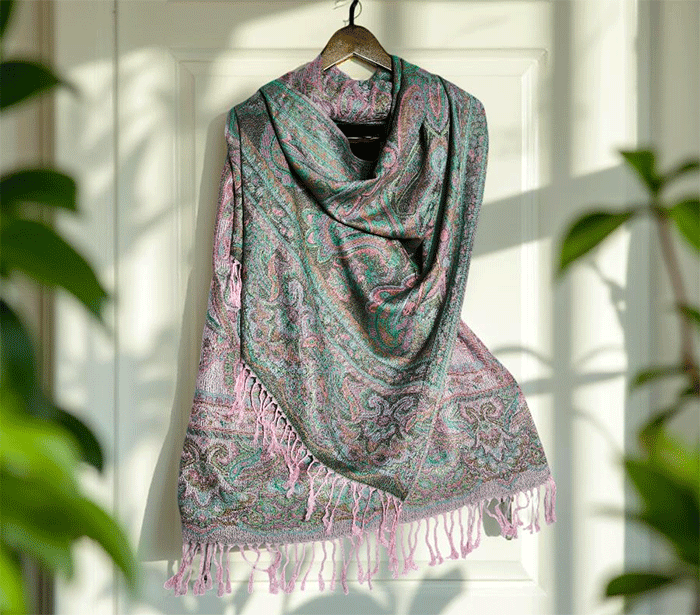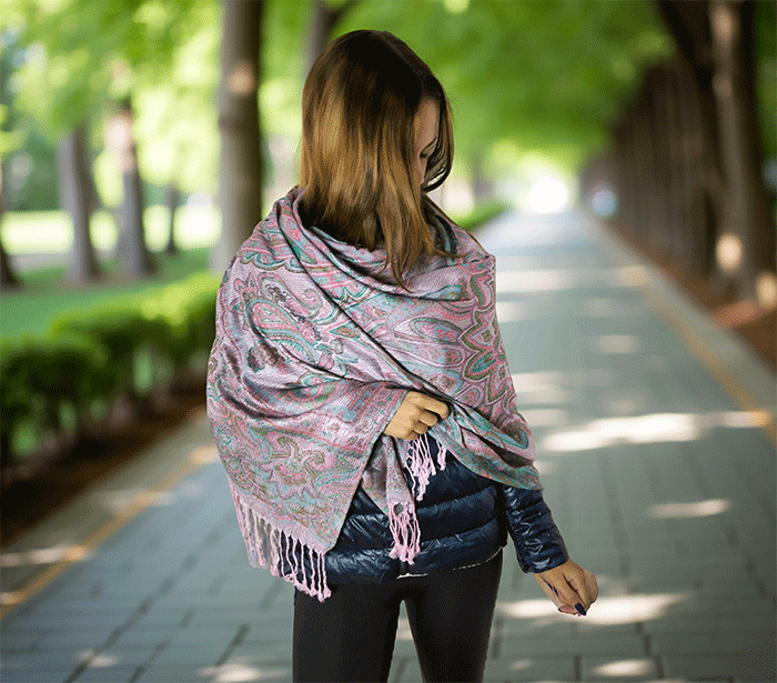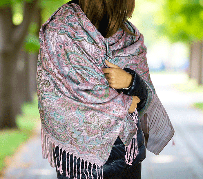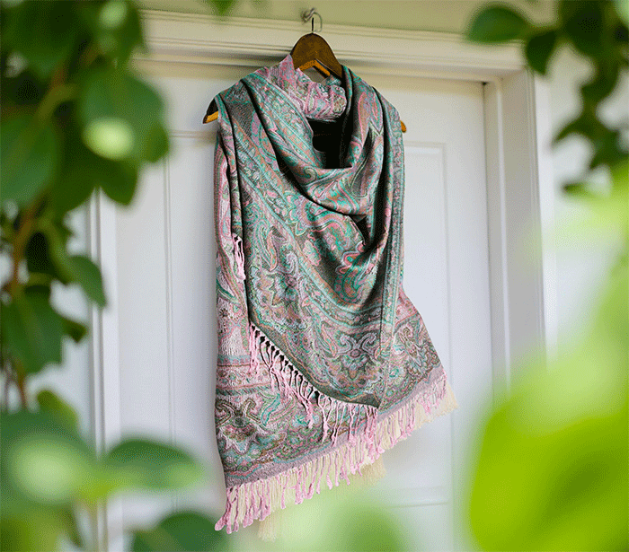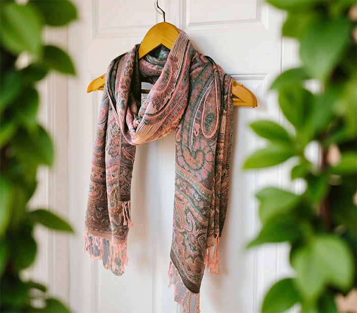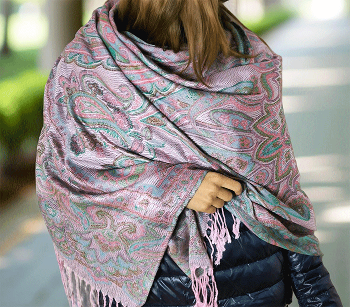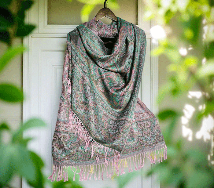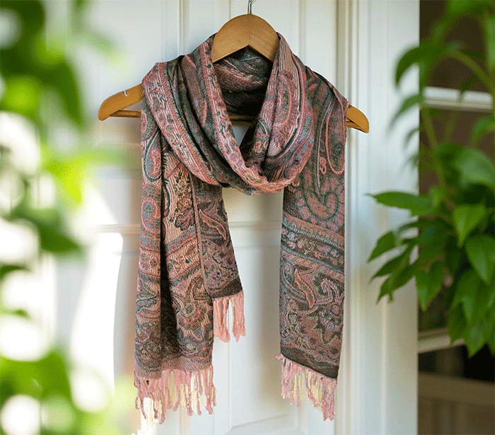 Šal Crazy v stilu pašmine iz naravnih materialov v roza odtenkih je barvit in živahen modni spremljevalec, ki združuje eleganco in udobje. Njegova toplina in mehkoba ustvarjata prijeten občutek okrog vratu, zaradi naravnih materialov pa je posebej primeren za ljudi z občutljivo kožo. Nositi ga je udobno v vseh letnih časih in na različnih priložnostih, saj prinaša pridih prefinjenosti in vsestranskosti.