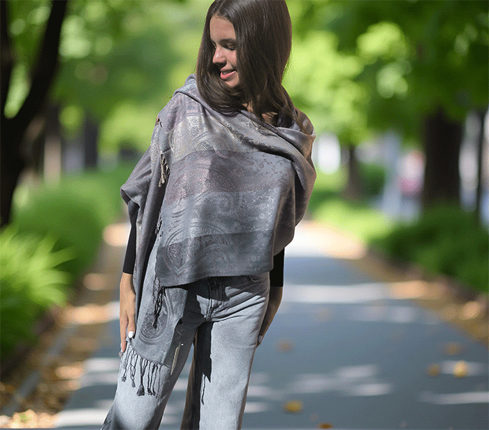S svojo elegantno teksturo in udobno padljivostjo je šal zasnovan v pašmina stilu, kar mu daje pridih razkošnosti, hkrati pa ostaja izjemno praktičen. Zaradi svoje vsestranskosti je ta šal za ženske primeren tako za hladne zimske dni kot tudi za sveže pomladne jutranje sprehode.