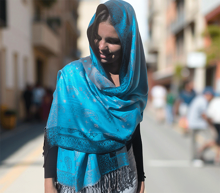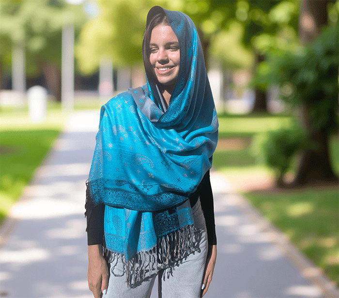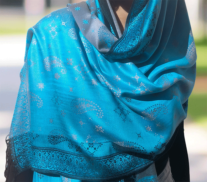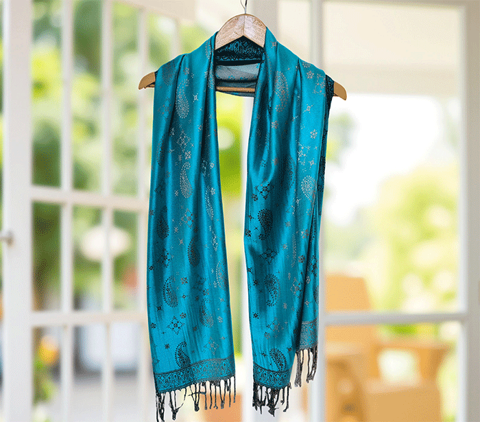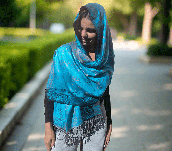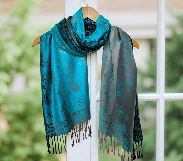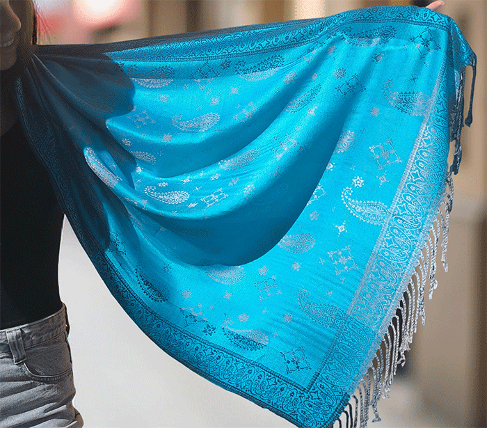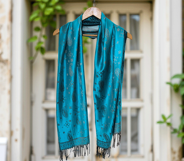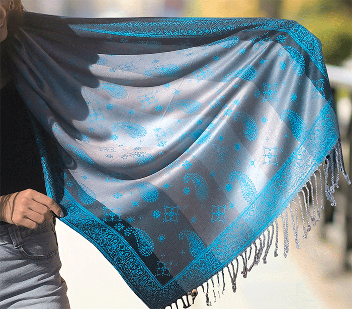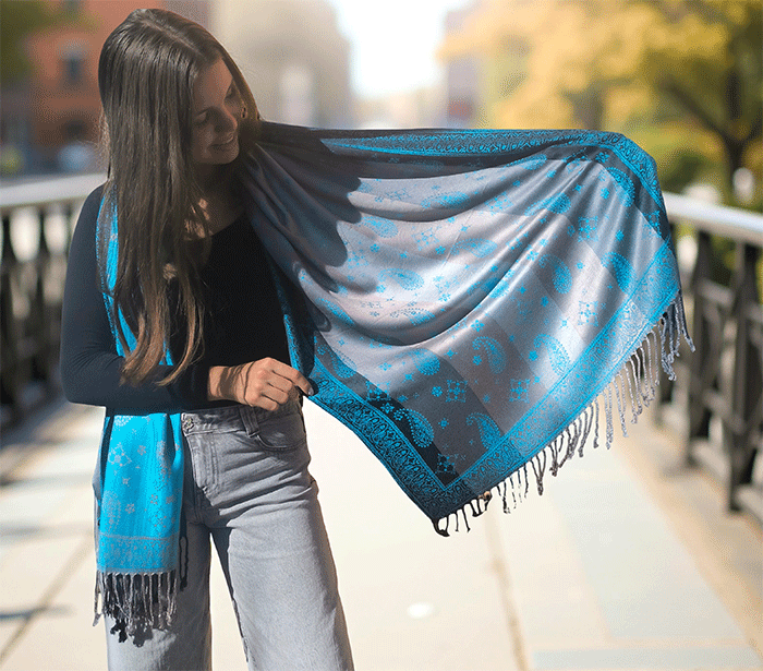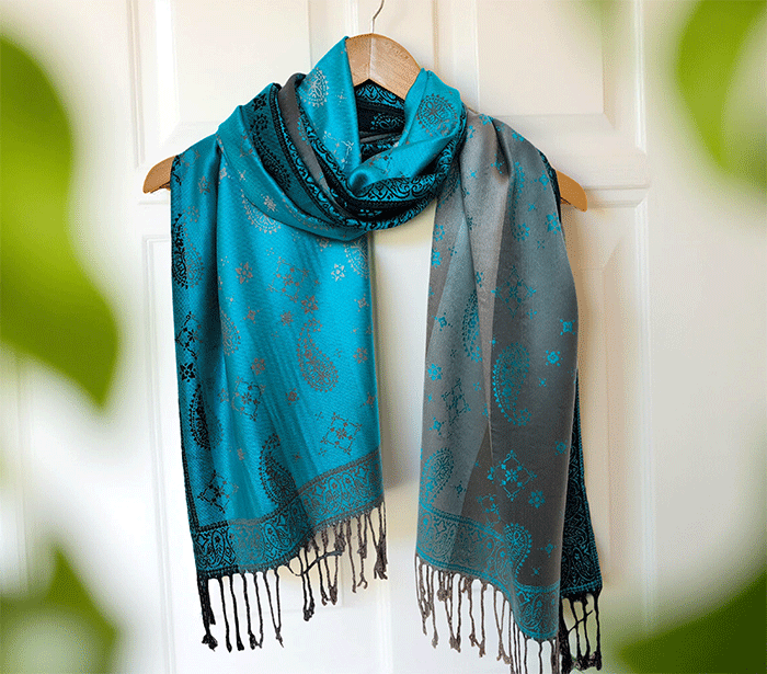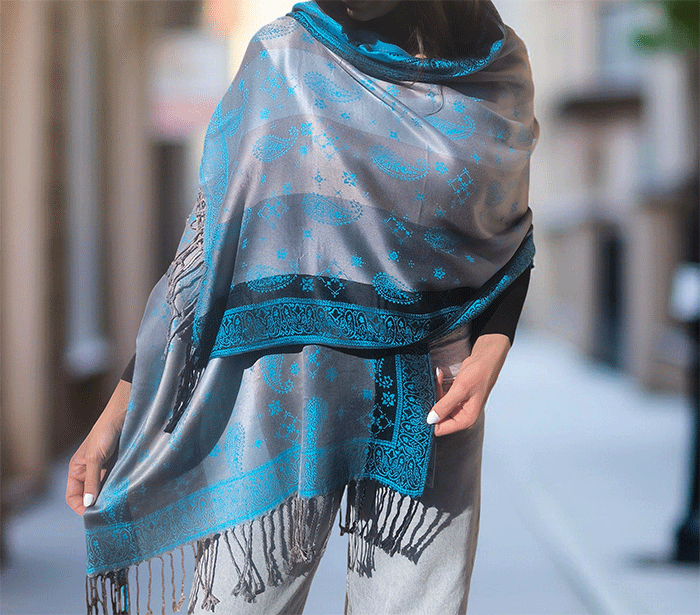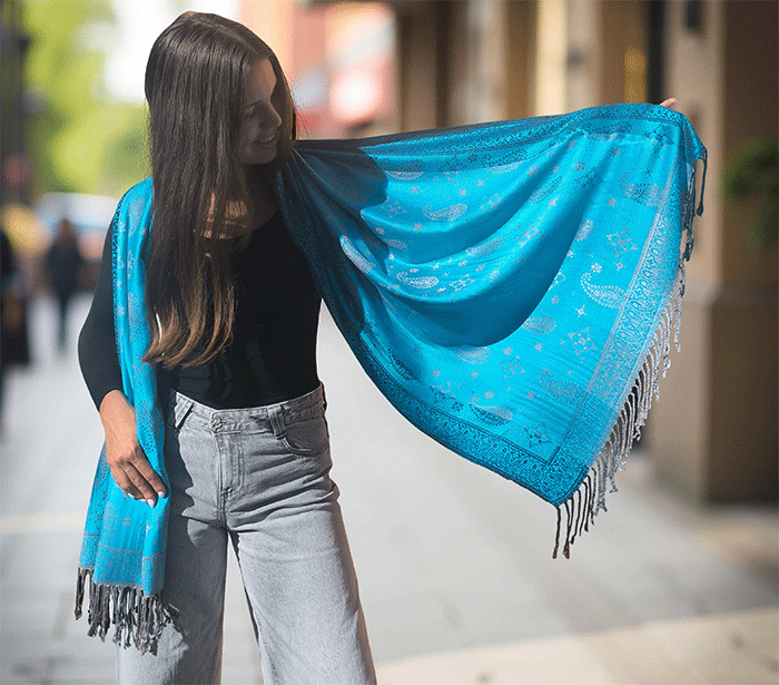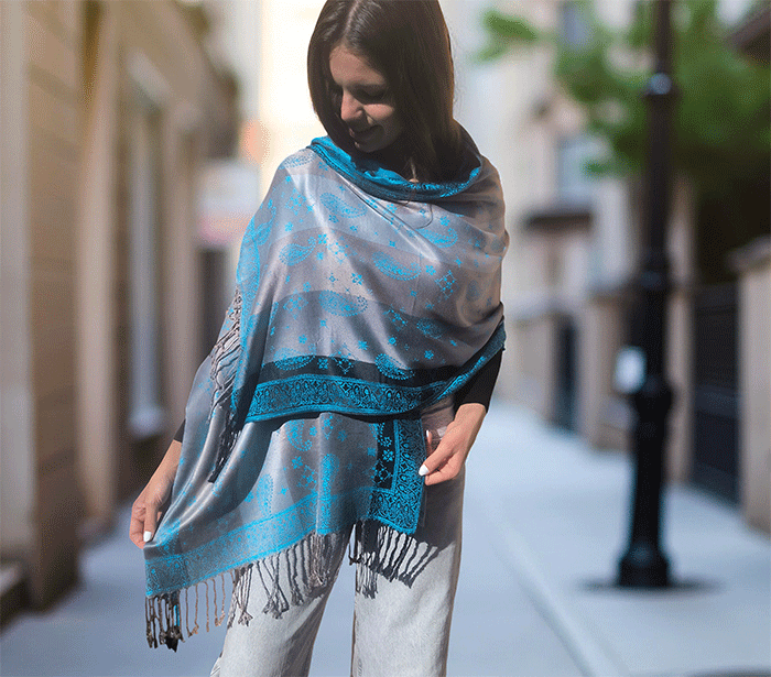 Odkrij čar elegance in udobja z našim čudovitim ženskim šalom v pašmina stilu, izdelanim iz naravnih, mehkih materialov, ki prijetno objamejo kožo in so primerni tudi za občutljivo kožo. Ta eleganten ženski šal združuje toplino, nežnost in prefinjen videz – popolna izbira za vsako priložnost.