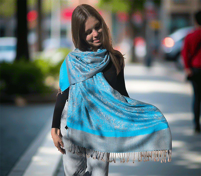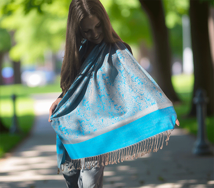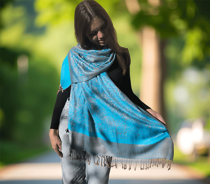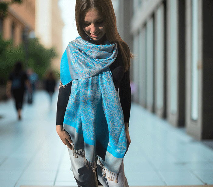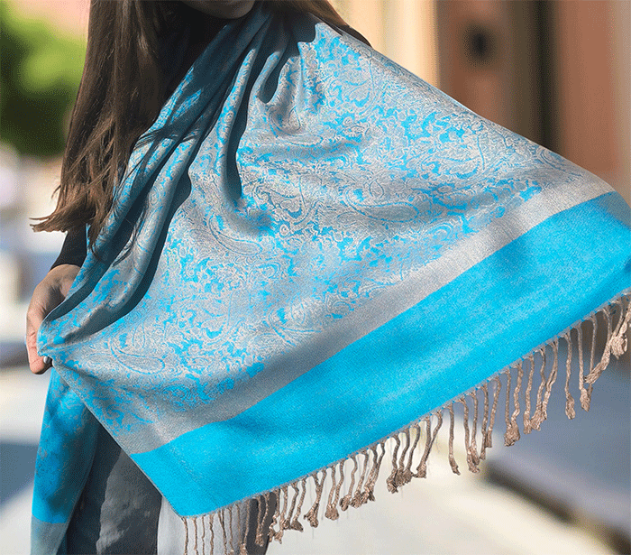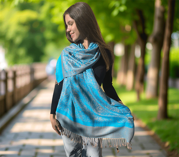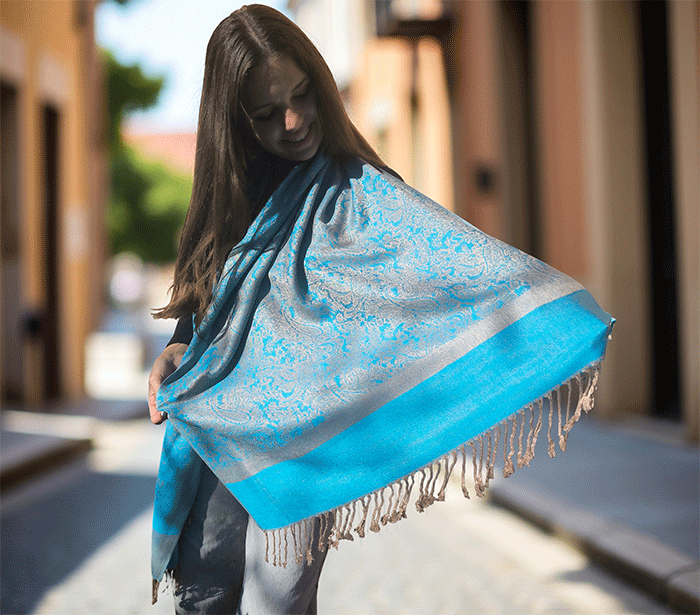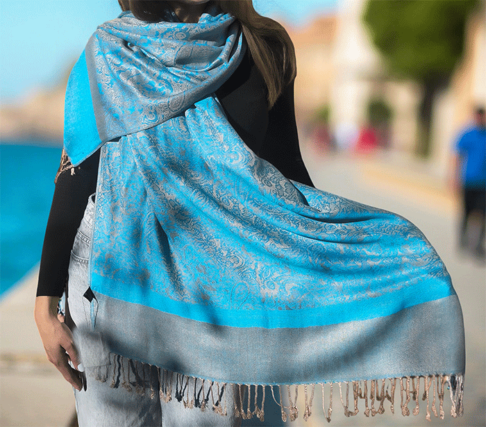 Kot ženski šal pašmina se lepo ovije okoli vratu in vas greje v hladnih dneh, hkrati pa ostaja lahkoten in zračen, ko temperature narastejo. Odlično se znajde v vlogi jesenskega šala, ki nudi ravno prav topline za sveže jesenske dni, kot zimskega šala, ki vas greje v mrazu, ter kot prehodnega šala v pomladnih mesecih, ko si želite nežne zaščite pred vetrom.
