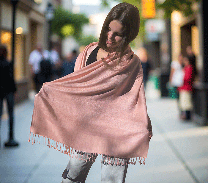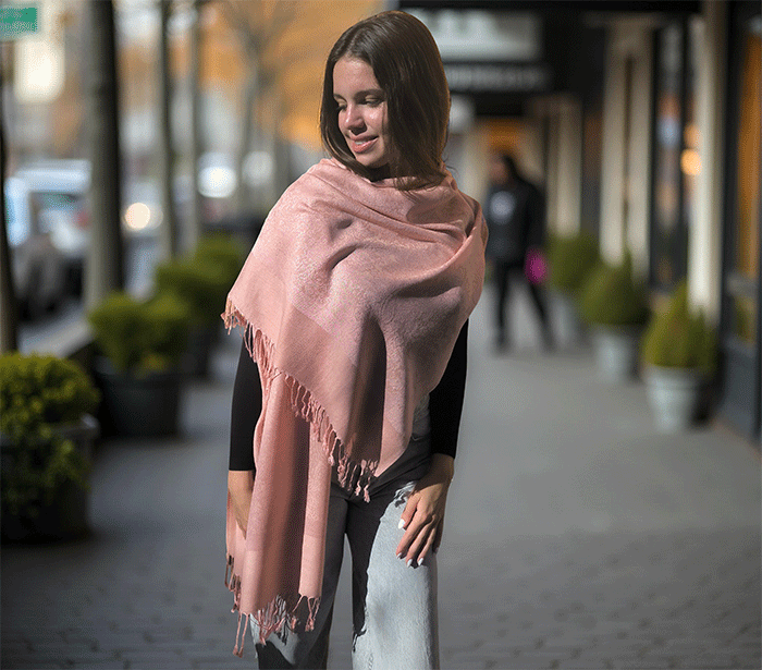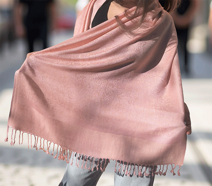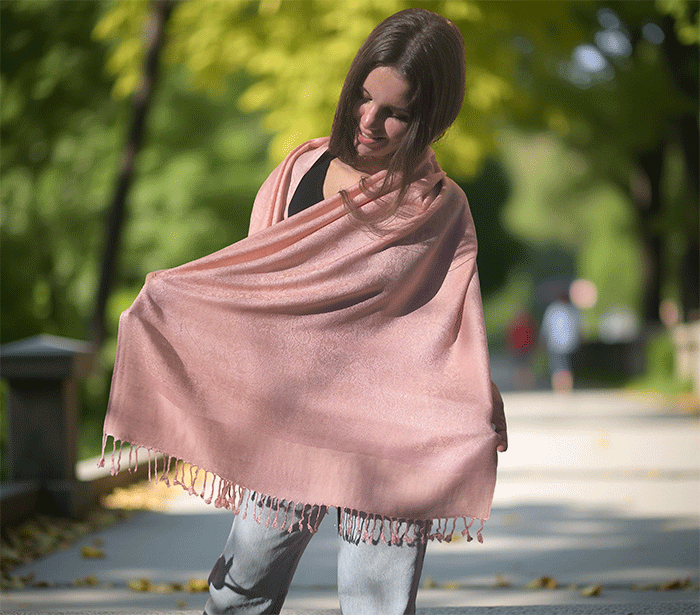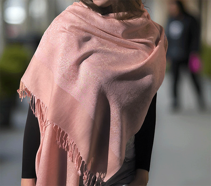 Kot ženski šal pašmina se lepo ovije okoli vratu in vas greje v hladnih dneh, hkrati pa ostaja lahkoten in zračen, ko temperature narastejo. Odlično se znajde v vlogi jesenskega šala, ki nudi ravno prav topline za sveže jesenske dni, kot zimskega šala, ki vas greje v mrazu, ter kot prehodnega šala v pomladnih mesecih, ko si želite nežne zaščite pred vetrom.