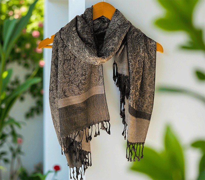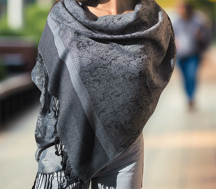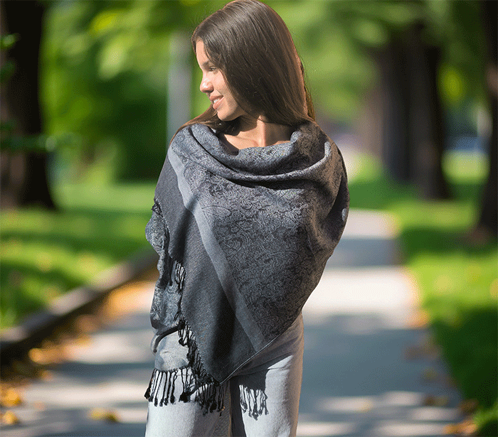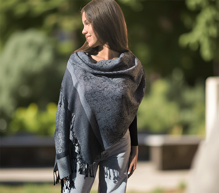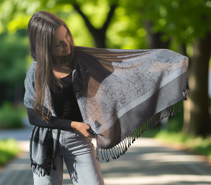Kot ženski šal pašmina se lepo ovije okoli vratu in vas greje v hladnih dneh, hkrati pa ostaja lahkoten in zračen, ko temperature narastejo. Odlično se znajde v vlogi jesenskega šala, ki nudi ravno prav topline za sveže jesenske dni, kot zimskega šala, ki vas greje v mrazu, ter kot prehodnega šala v pomladnih mesecih, ko si želite nežne zaščite pred vetrom.