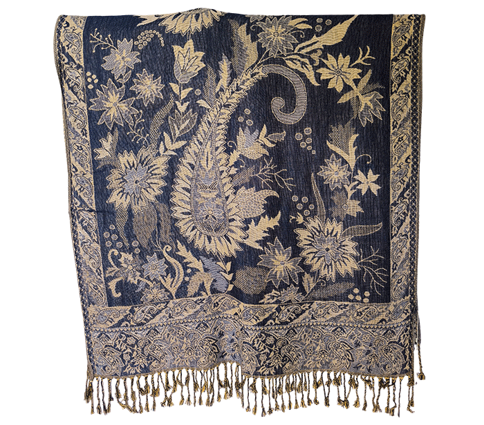 • Naložite sliko v pregledovalnik galerije, Šal Igra temno moder bež pašmina