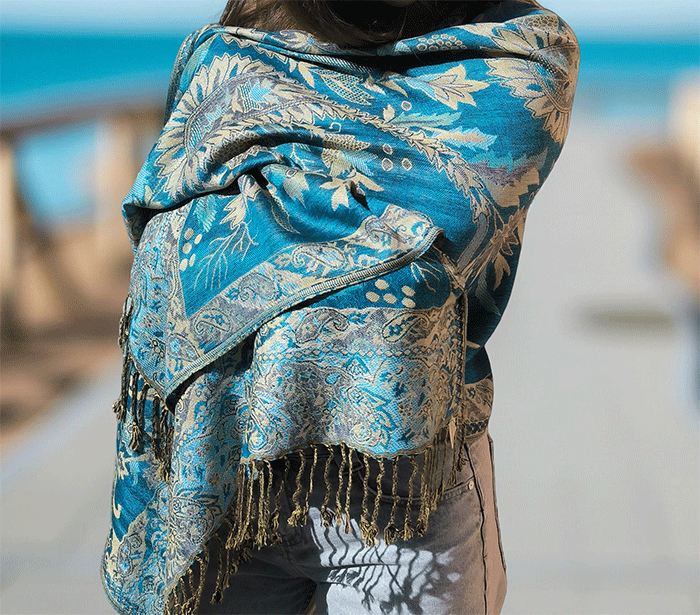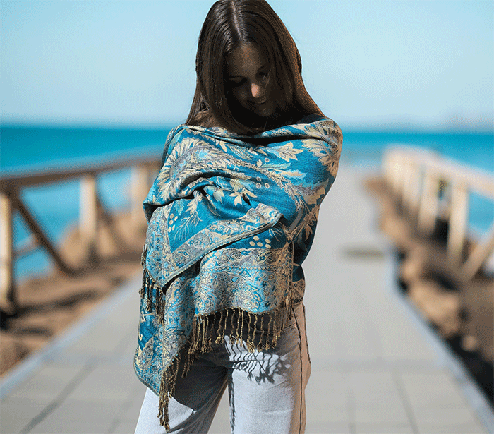 Ženski šal Igra v pašmina stilu, narejen iz naravnih materialov bombaža in viskoze ter prinaša številne prednosti za telo in dušo. Njegova mehkoba in prijaznost do občutljive kože omogočata prijetno nošenje, kar še posebej cenijo ljudje, ki iščejo udobje in nežnost.