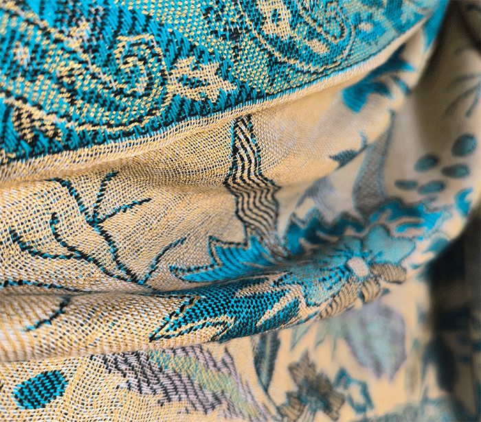 Ženski šal pašmina s temi barvami združuje energijo, ravnovesje in živahnost, kar lahko spodbuja dobro razpoloženje in pozitivno naravnanost. Igrivi vzorci v tem prehodnem in tudi zimskem šalu še dodatno poudarijo veselje in spontanost, kar ga dela še bolj privlačnega za vse tiste, ki se radi izražajo skozi barve.