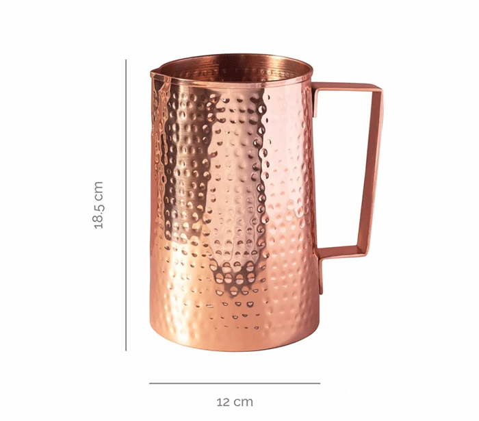 Uživajte v vsakem požirku vode iz 99,9 % čistega bakrenega vrča. Ta vrč ni le čudovit naravni izdelek, ampak tudi del tisočletne tradicije ajurvede, ki poudarja, kako pomembno je pitje vode iz bakra za ravnovesje v telesu.
