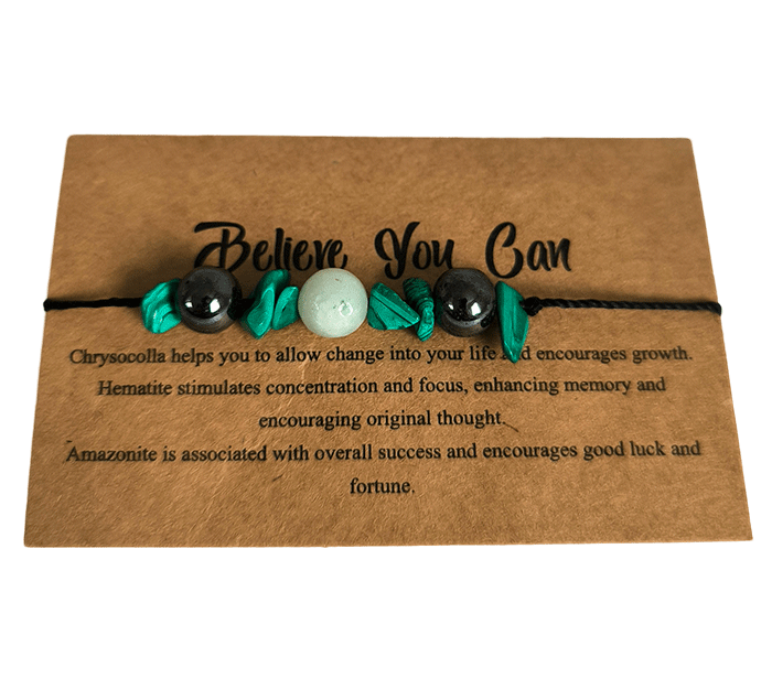 Zapestnica "Believe You Can" ali verjemi, da zmoreš, združuje kristale, ki krepijo notranjo moč, samozaupanje in odločnost. S svojim edinstvenim energijskim vplivom vas spodbuja, da verjamete vase in zaupate v svojo sposobnost premagovanja izzivov.