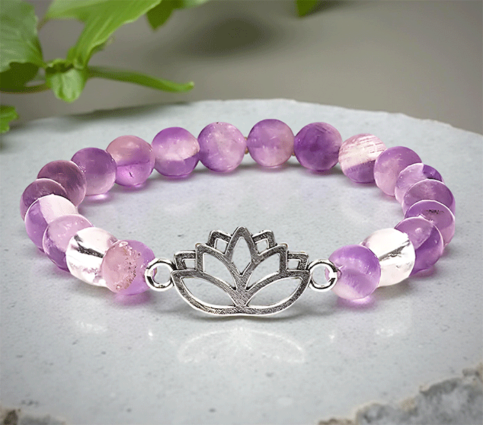Ametist je eden najbolj priljubljenih kristalov za umirjanje misli in energijsko ravnovesje, simbol lotosa pa predstavlja čistost, prebujenje in novo življenjsko energijo.