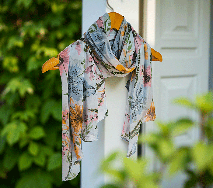 Ženski šal s cvetovi – mehak in eleganten modni dodatek