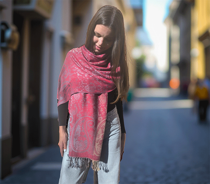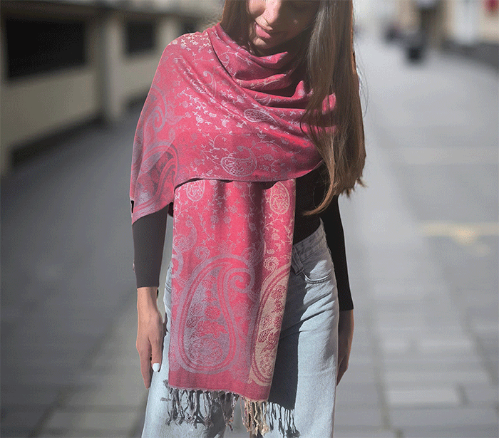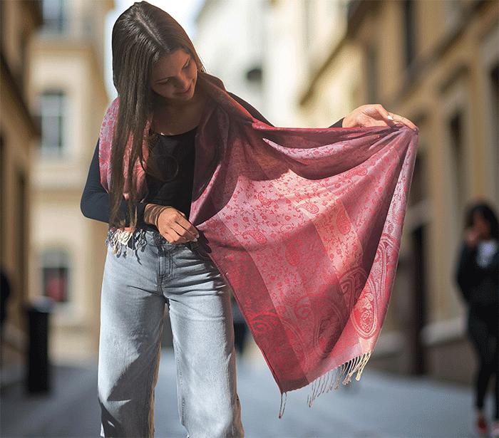 S svojo elegantno teksturo in udobno padljivostjo je šal zasnovan v pašmina stilu, kar mu daje pridih razkošnosti, hkrati pa ostaja izjemno praktičen. Zaradi svoje vsestranskosti je ta šal za ženske primeren tako za hladne zimske dni kot tudi za sveže pomladne jutranje sprehode.