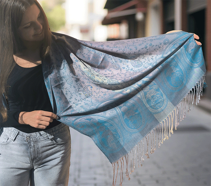 S svojo elegantno teksturo in udobno padljivostjo je šal zasnovan v pašmina stilu, kar mu daje pridih razkošnosti, hkrati pa ostaja izjemno praktičen. Zaradi svoje vsestranskosti je ta šal za ženske primeren tako za hladne zimske dni kot tudi za sveže pomladne jutranje sprehode.