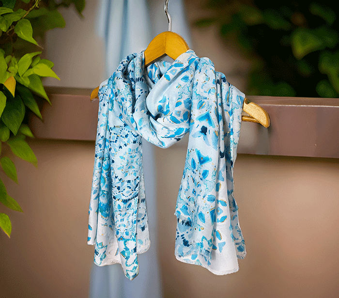 Odkrij čarobnost, ki jo prinaša ženski šal Hope – čudovit modni šal z unikatnim motivom mandal, ki simbolizirajo harmonijo, ravnovesje in dobro počutje. Ta lahkoten poletni in prehodni šal je izdelan iz mehke viskoze, ki bo razvajala tvojo kožo z nežnim dotikom.