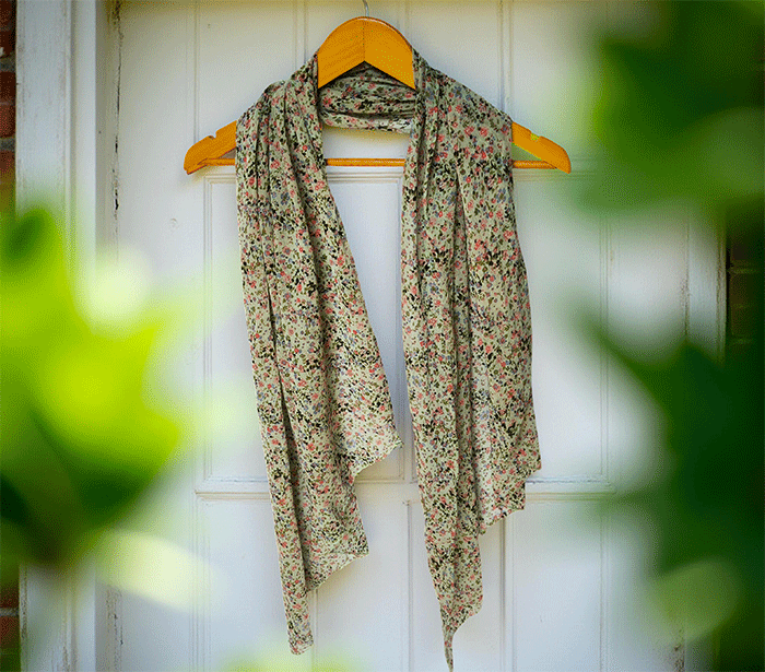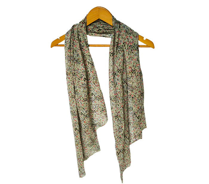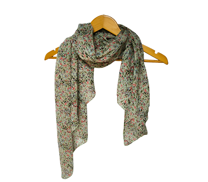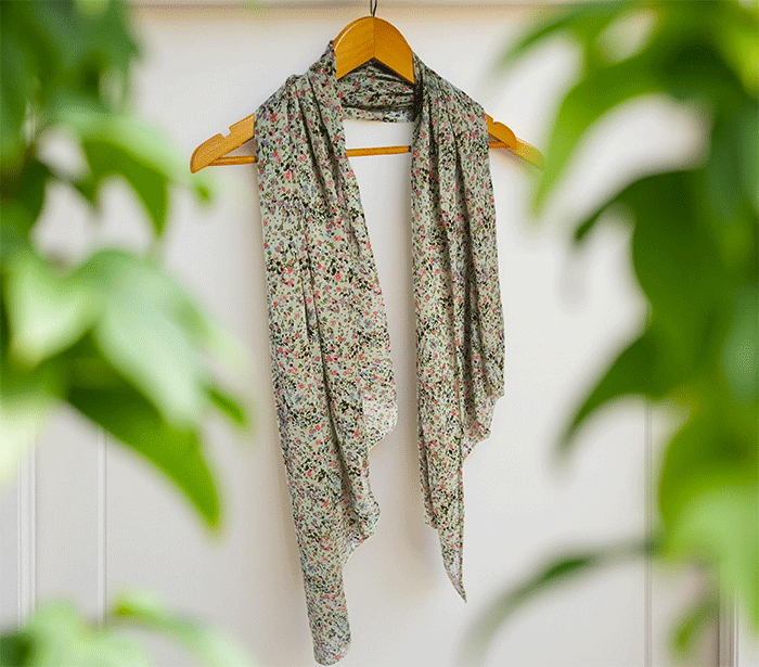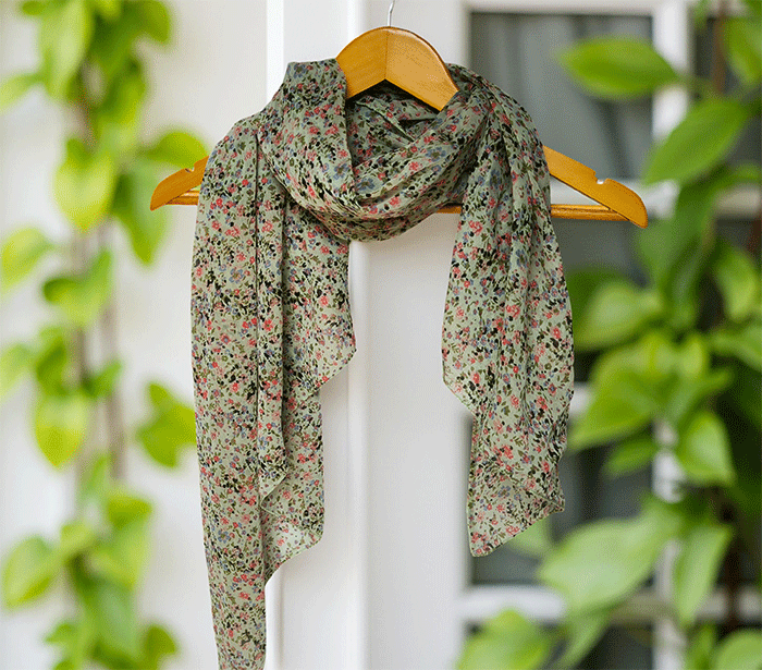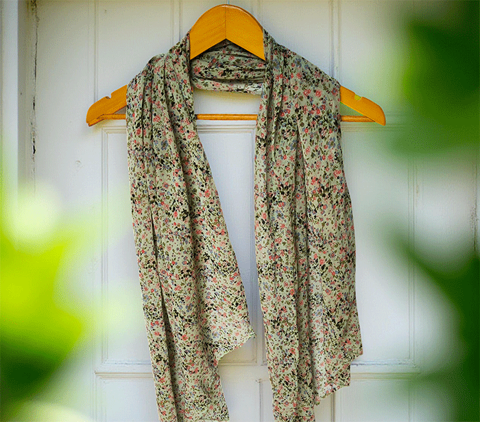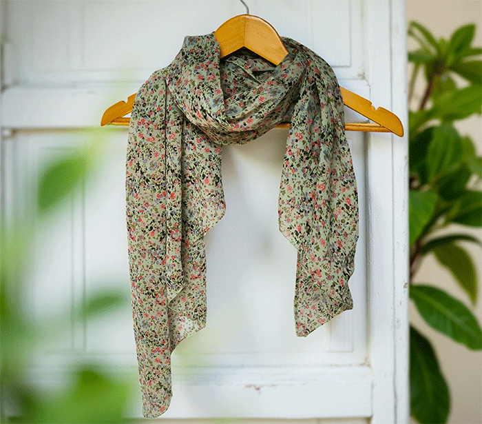 Ženski šal Joy rožice zelen - bombaž svila