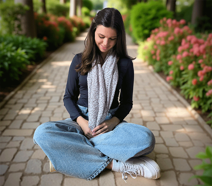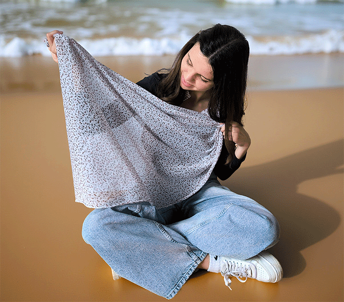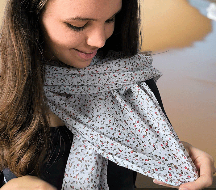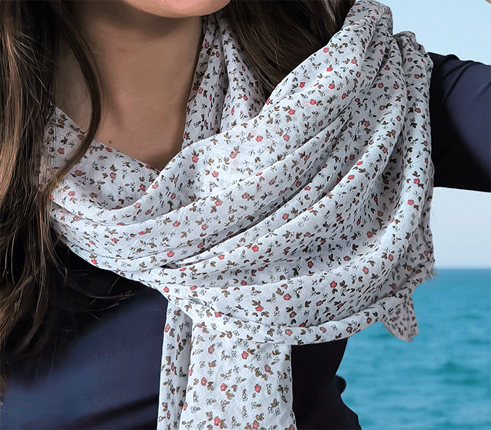 Odkrijte ženski šal z rožicami, popoln modni šal za poletne in prehodne dni. Narejen iz nežne mešanice mehkega bombaža in svile, ta ženski šal vas bo očaral s svojo lahkotnostjo, prijetno teksturo in igrivim vzorcem majhnih cvetlic. Je izjemno nosljiv, koži prijazen in primeren tudi za občutljivo kožo, saj naravni materiali dihajo in zagotavljajo udobje skozi ves dan.