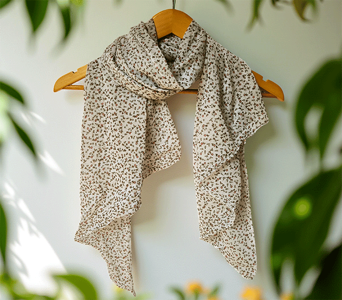 Odkrijte ženski šal z rožicami, popoln modni šal za poletne in prehodne dni. Narejen iz nežne mešanice mehkega bombaža in svile, ta ženski šal vas bo očaral s svojo lahkotnostjo, prijetno teksturo in igrivim vzorcem majhnih cvetlic. Je izjemno nosljiv, koži prijazen in primeren tudi za občutljivo kožo, saj naravni materiali dihajo in zagotavljajo udobje skozi ves dan.