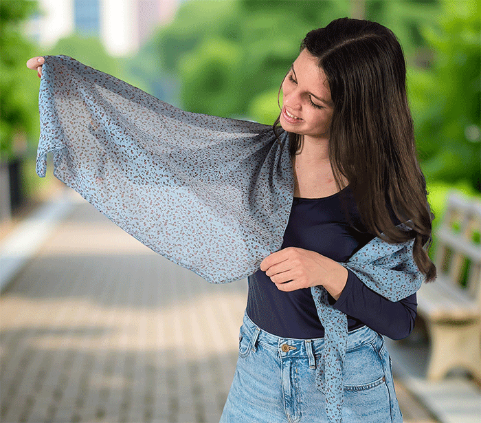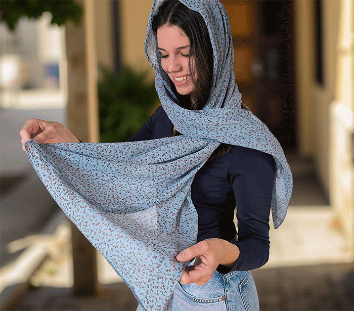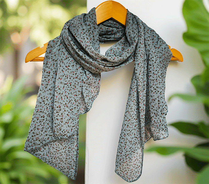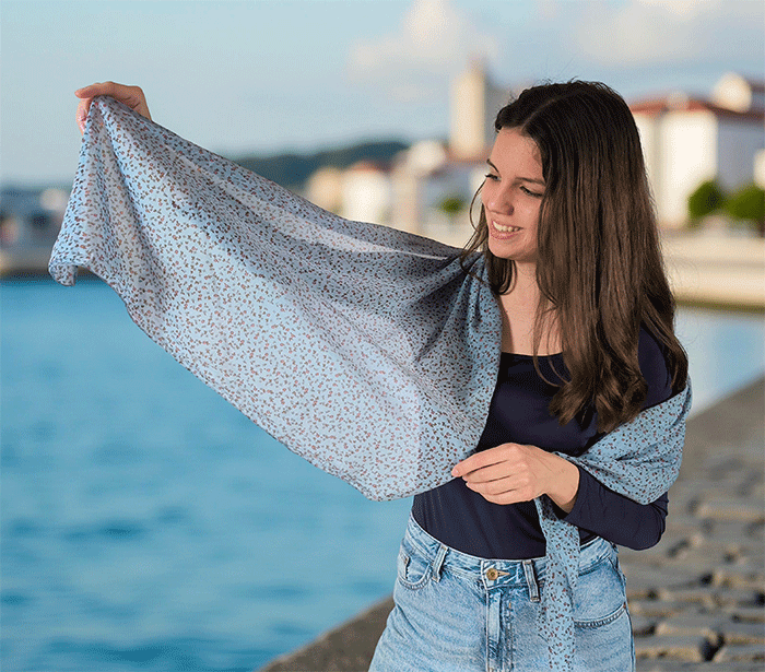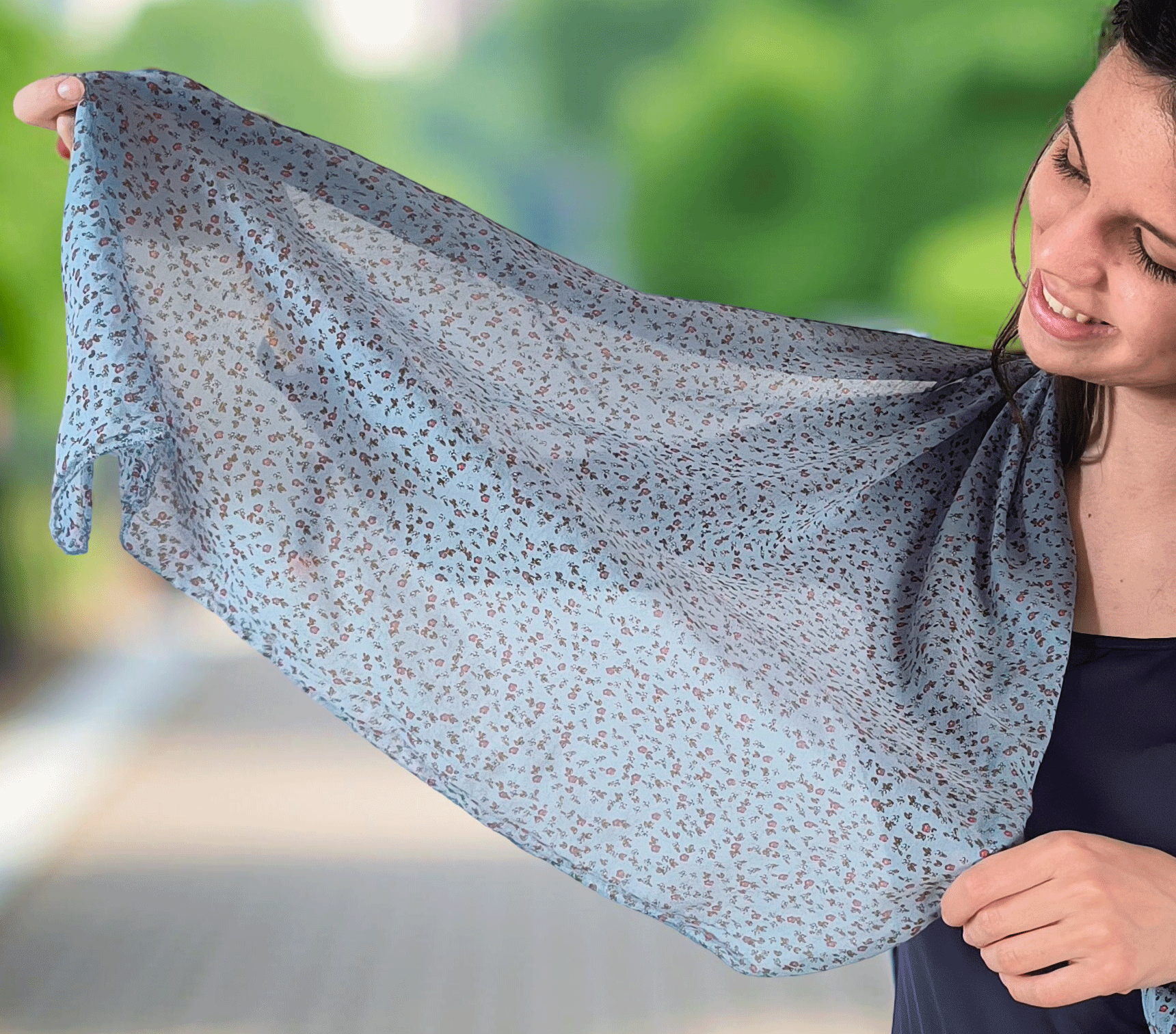 Odkrijte ženski šal z rožicami, popoln modni šal za poletne in prehodne dni. Narejen iz nežne mešanice mehkega bombaža in svile, ta ženski šal vas bo očaral s svojo lahkotnostjo, prijetno teksturo in igrivim vzorcem majhnih cvetlic. Je izjemno nosljiv, koži prijazen in primeren tudi za občutljivo kožo, saj naravni materiali dihajo in zagotavljajo udobje skozi ves dan.