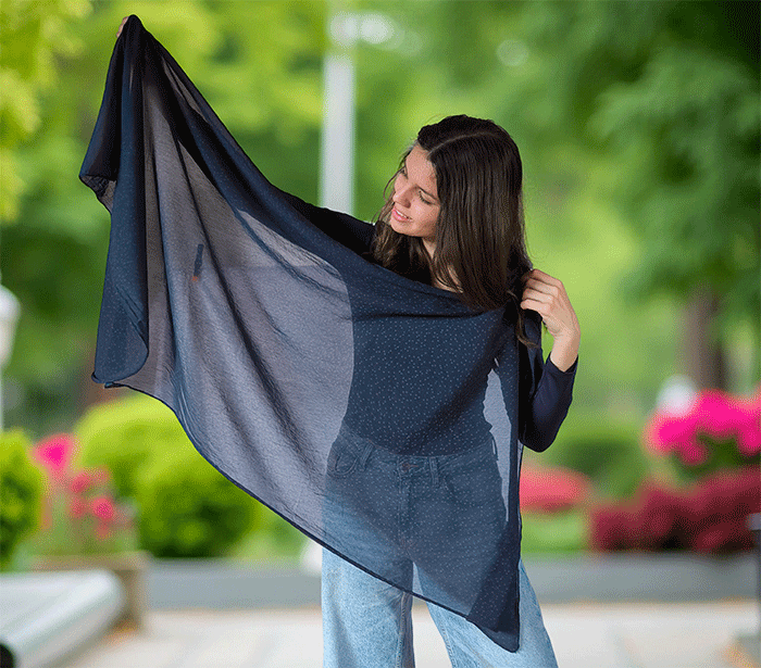 Odkrijte ženski šal z rožicami, popoln modni šal za poletne in prehodne dni. Narejen iz nežne mešanice mehkega bombaža in svile, ta ženski šal vas bo očaral s svojo lahkotnostjo, prijetno teksturo in igrivim vzorcem majhnih cvetlic. Je izjemno nosljiv, koži prijazen in primeren tudi za občutljivo kožo, saj naravni materiali dihajo in zagotavljajo udobje skozi ves dan.